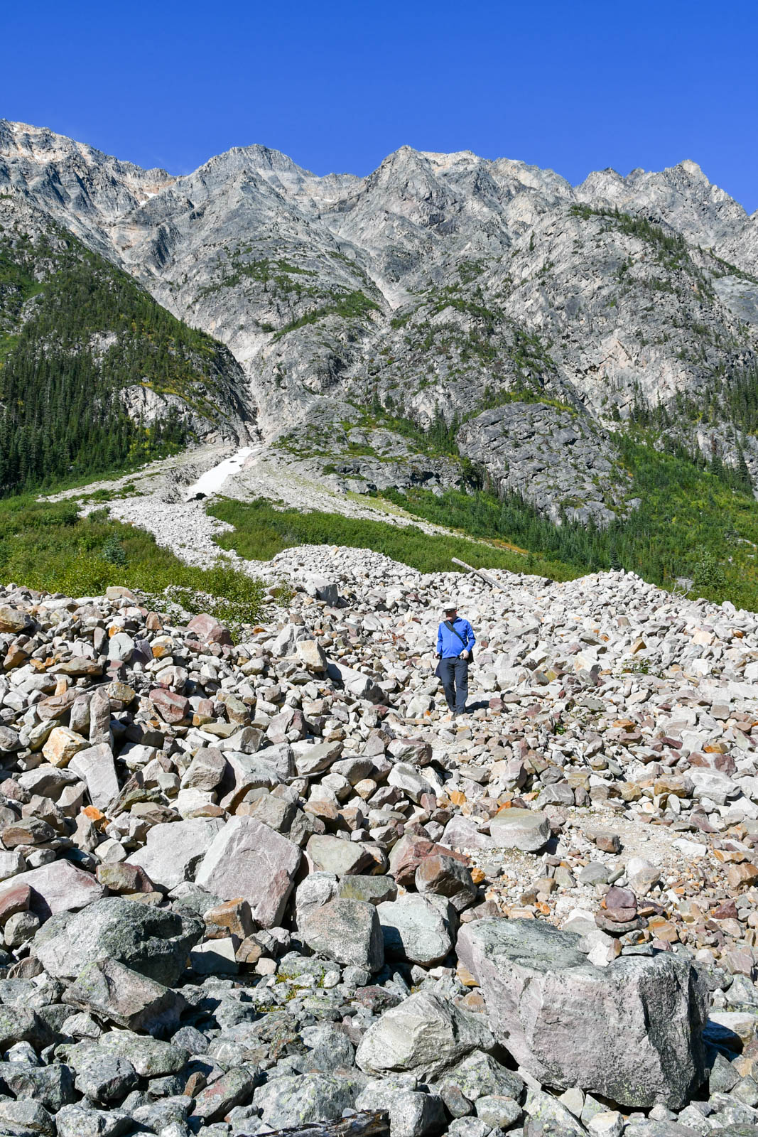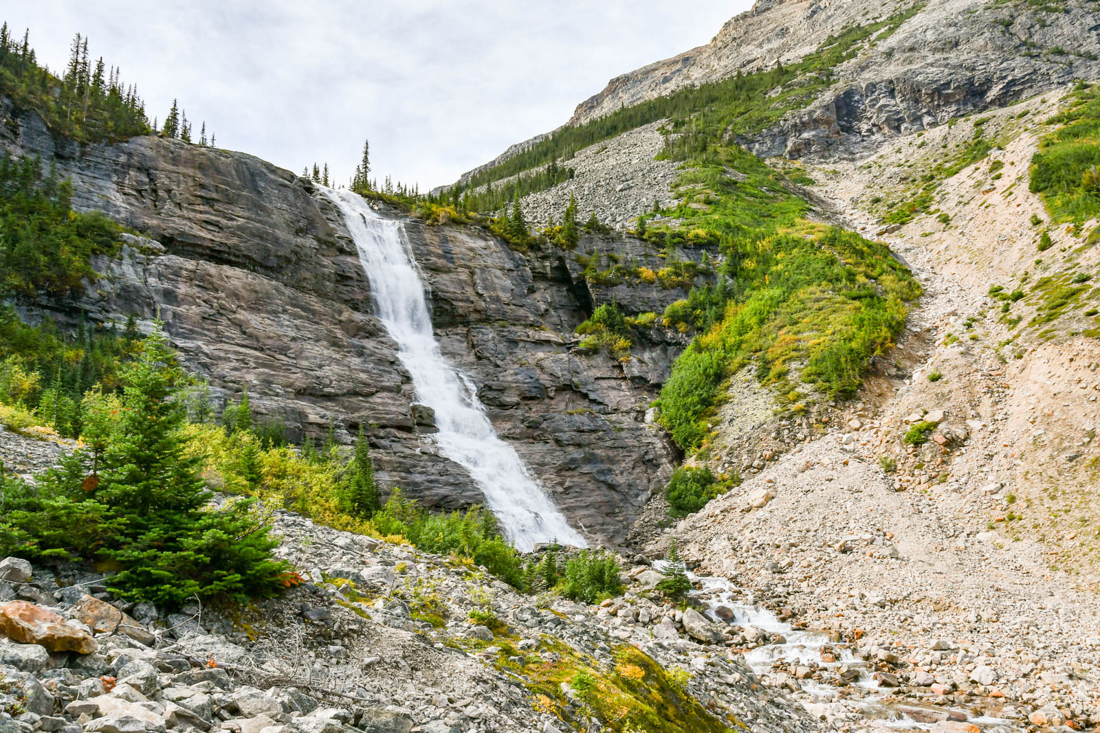 Jasper anno nu is druk. Helaas niet meer het idyllische kleine dorpje wat het ooit was. Meer mensen en minder dieren. Tja, ik neem aan dat die twee dingen verband houden. We besloten om een wandeling te maken naar Geraldine lakes. Die wandeling stond niet op de kaart, dus we hoopten dat het daar rustiger zou zijn. Prachtige woeste natuur is nog steeds te vinden rondom Jasper. Je moet er alleen iets meer moeite voor doen. De wandeling was erg zwaar omdat die grotendeels over steenlawines voerde, waardoor je eigenlijk altijd aan het klauteren en klimmen was en soms zelfs op handen en voeten vooruit moest. De pika’s en marmotten vonden ons maar vreemde knaagdieren. Langs wat kleinere watervallen omhoog naar een prachtige grote waterval en een meer. Bijna alleen op de wereld.