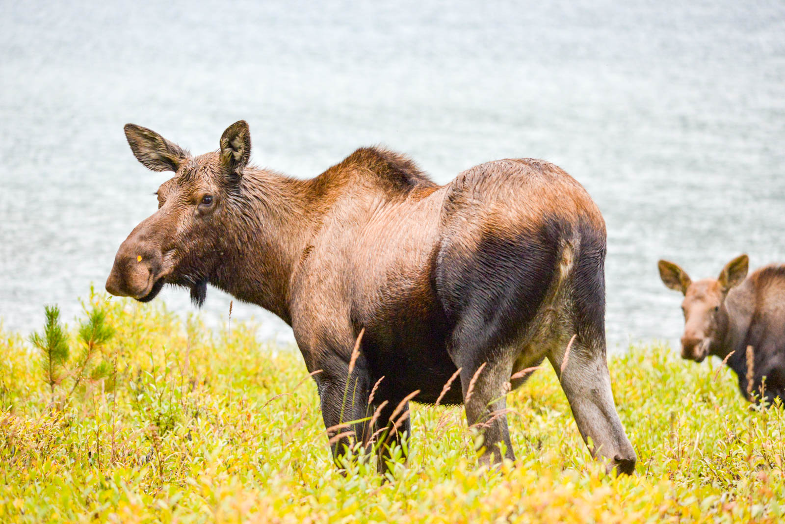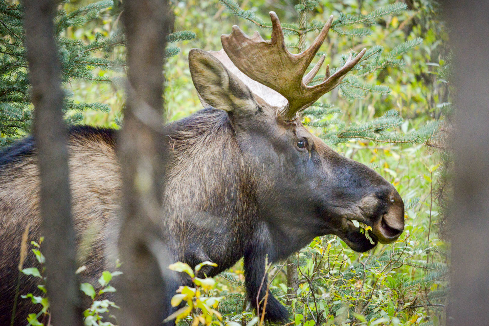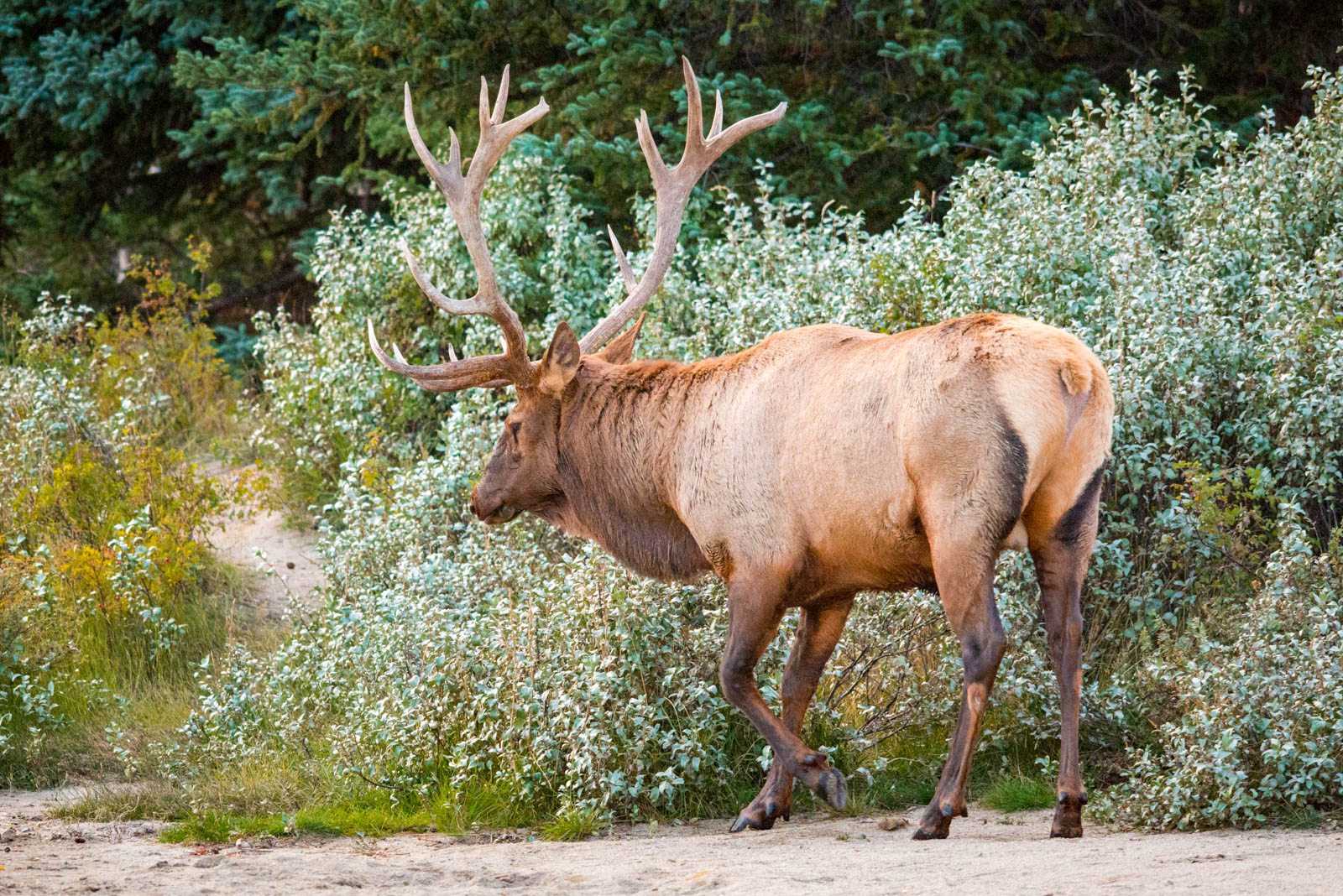 In Waterton heeft de bosbrand inmiddels ook gebouwen verbrand en is het vuur de prairie op. In het Nationale Park hadden we gehoopt veel wildlife te kunnen zien, maar momenteel is dat definitief van de baan. Wij zijn dus in plaats daarvan naar het noorden gegaan, naar Revelstoke, waar we een prachtige wandeling naar Eva Lake hebben gemaakt. De volgende dag reden we via Yoho National Park, de Icefields Parkway op richting Jasper. Dit mooiste stukje asfalt van Canada met enorme bergen, gletsjers en rivieren kostte ook nu weer veel pixels. Vlak voor Jasper staken twee dames-elanden de weg over om ons welkom te heten. Iets ten Noorden van Jasper hebben we een blokhut met uitzicht op de onwerkelijk blauwe rivier en wapiti-herten in de ‘voortuin’.